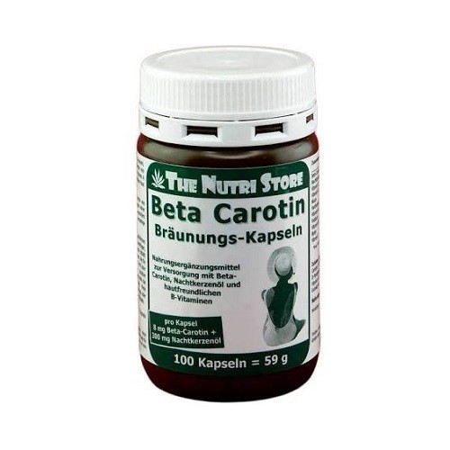 Beta Carotin Bräunungs-Kapseln kombinieren wertvolles natürliches Beta-Carotin mit 300 mg Nachtkerzenöl und weiteren wichtigen Vitaminen des B-Komplexes. Nachtkerzenöl enthält biologisch aktive, mehrfach ungesättigte essenzielle Fettsäuren, die für den menschlichen Körper von großer Bedeutung sind, von ihm aber nicht selbst hergestellt werden können. Eine positive Begleiterscheinung von Carotin ist der „Karotteneffekt“, bei dem die Haut eine sonnenbraunähnliche, gesunde Farbe erhält. Viele Menschen beginnen deshalb ca. 2 bis 4 Wochen vor dem Urlaub oder der sonnigen Sommerperiode mit dem Verzehr von Carotin-Kapseln.