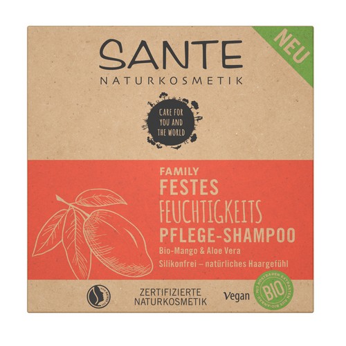 Das SANTE FAMILY Feste Feuchtigkeits Pflege-Shampoo mit Bio-Mango für trockenes Haar spendet intensive Feuchtigkeit. Die natürlich wirksame Pflegeformel iin fester Form reinigt besonders mild und schäumt ergiebig. Die nachhaltige Alternative zu herkömmlichen Shampoos ohne Kompromisse – Deinem Haar und der Umwelt zuliebe. Rein natürlicher, tropischer Duft. Verträglichkeit dermatologisch getestet. Bio-Mango: Bekannt für ihre intensiv feuchtigkeitsspendende Wirkung. Die perfekten Ergänzungen für noch mehr Pflege & Kämmbarkeit: SANTE FAMILY Feuchtigkeits Spülung & 3 MIN Feuchtigkeits Maske. Umweltfreundlich. Ressoucenschonend. Mit nachwachsenden Rohstoffen. Ideal auf Reisen & beim Sport. Karton-Material aus 100% recycelten Fasern. Umweltfreundliche, mineralölfreie Farben. 0% Platikverpacking.
